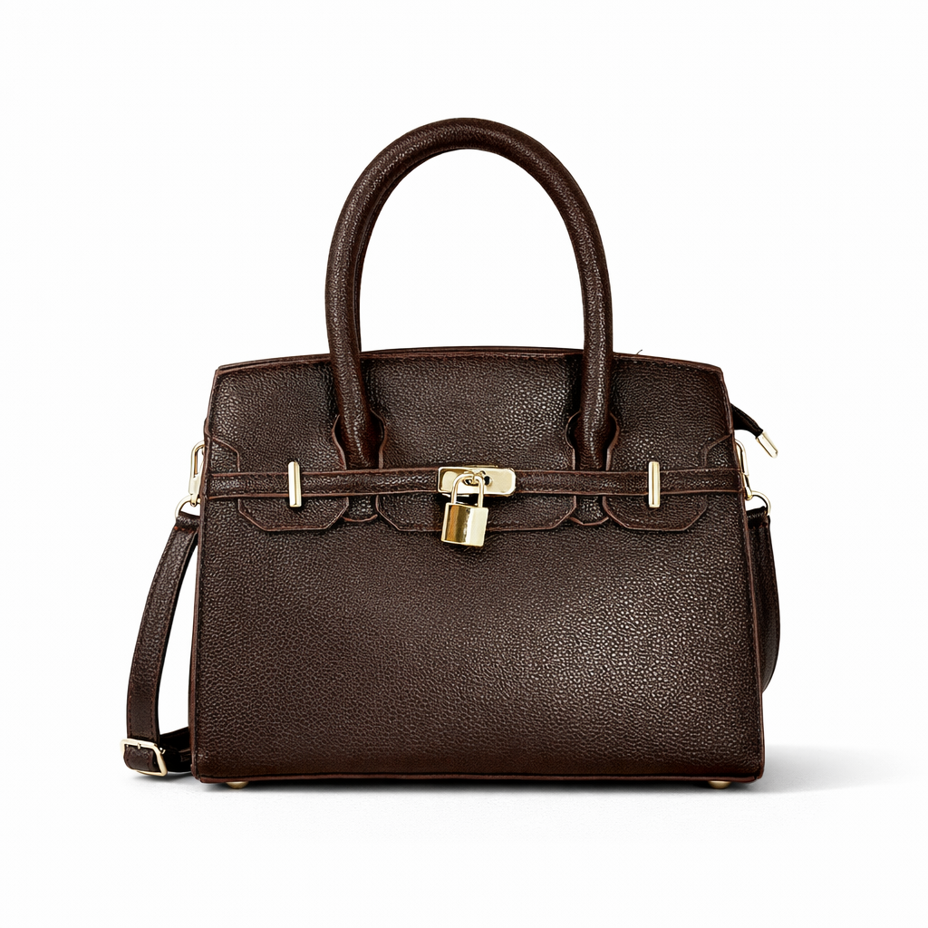 Na cor café, elegante e versátil, a Bolsa Torino se destaca pelo shape compacto, alça de mão firme e fecho frontal decorativo que adiciona charme e personalidade ao modelo.