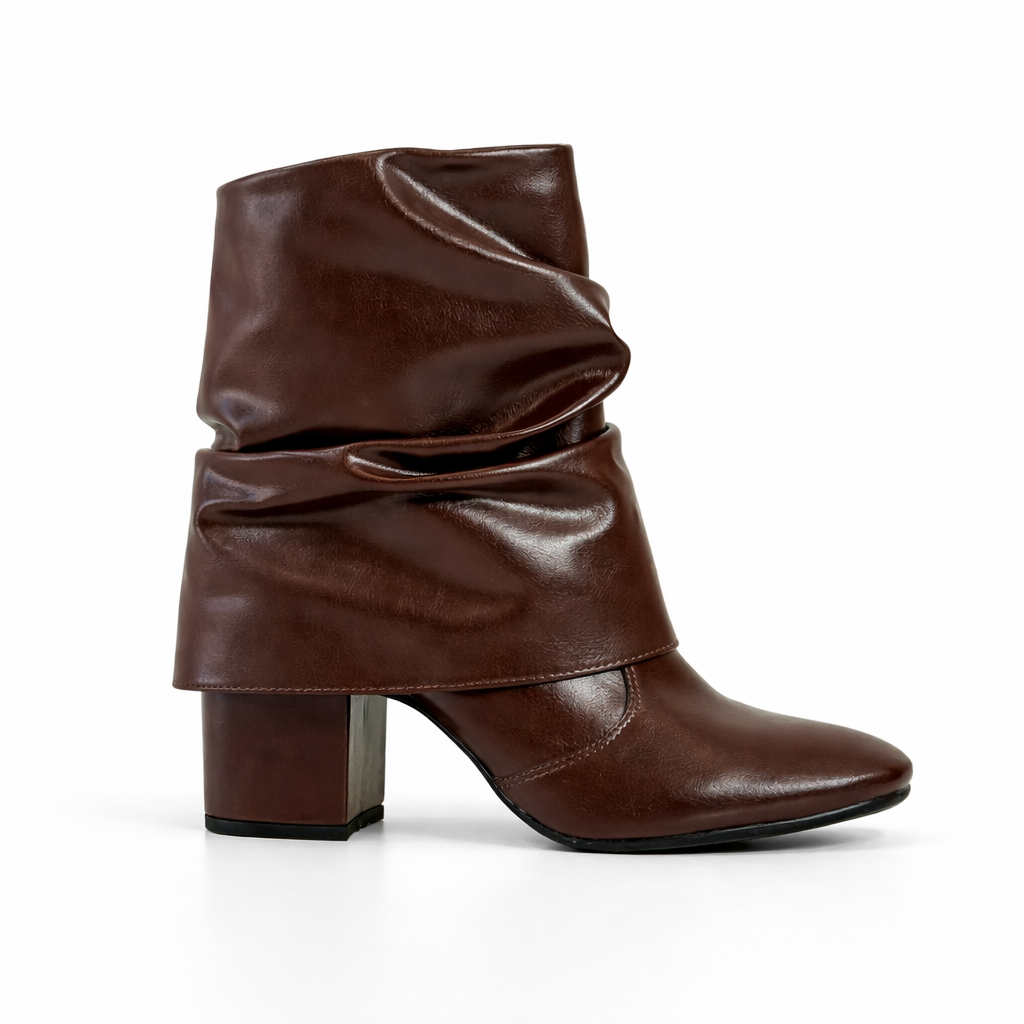 A Bota Feminina Ravello na cor café é a escolha ideal para quem busca um visual elegante com um toque moderno. Seu design com cano curto e acabamento com efeito franzido cria uma presença sofisticada e atual, perfeita para elevar produções do dia a dia com estilo.