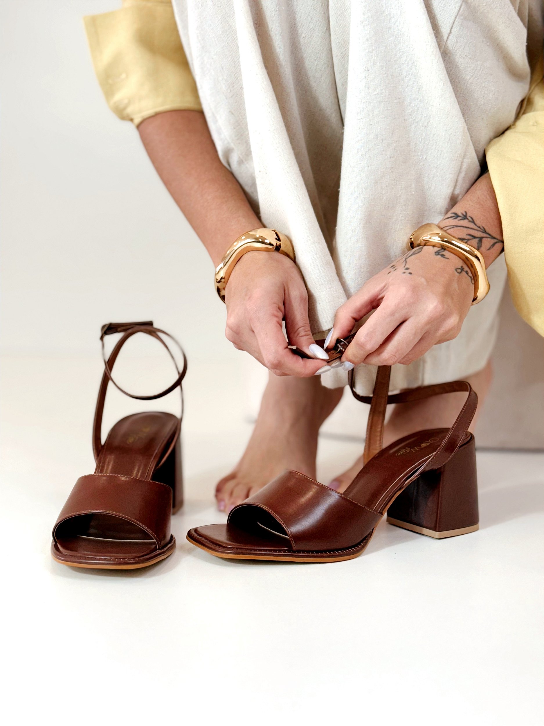 A Sandália Feminina Flávia é a união perfeita entre conforto e sofisticação. Na cor café e com salto bloco, ela garante estabilidade e estilo, sendo ideal tanto para o dia a dia quanto para ocasiões especiais. Seu design minimalista com tira larga frontal e fechamento no tornozelo valoriza o visual e traz segurança em cada passo.
