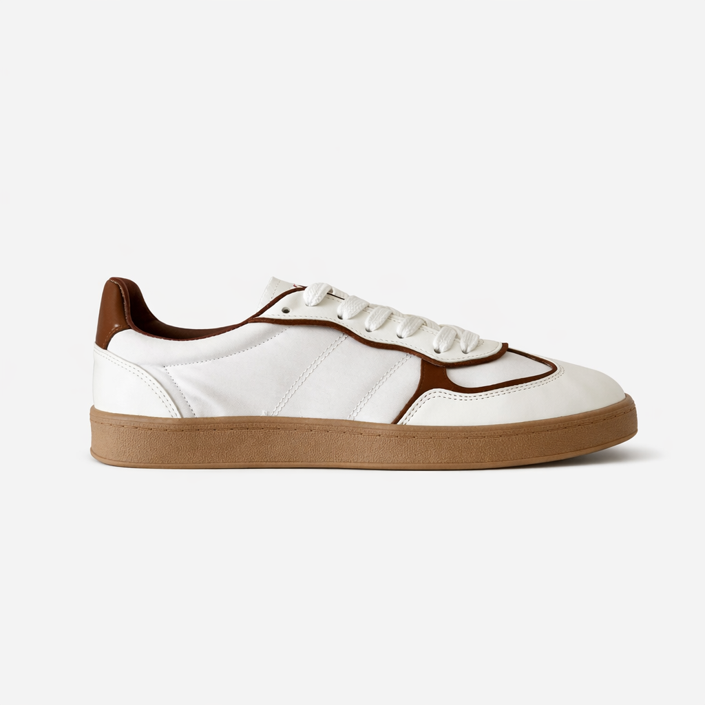 Palavras-chave: tênis feminino branco, tênis branco marrom, sneaker feminino Glow, tênis casual branco, tênis versátil para trabalho.